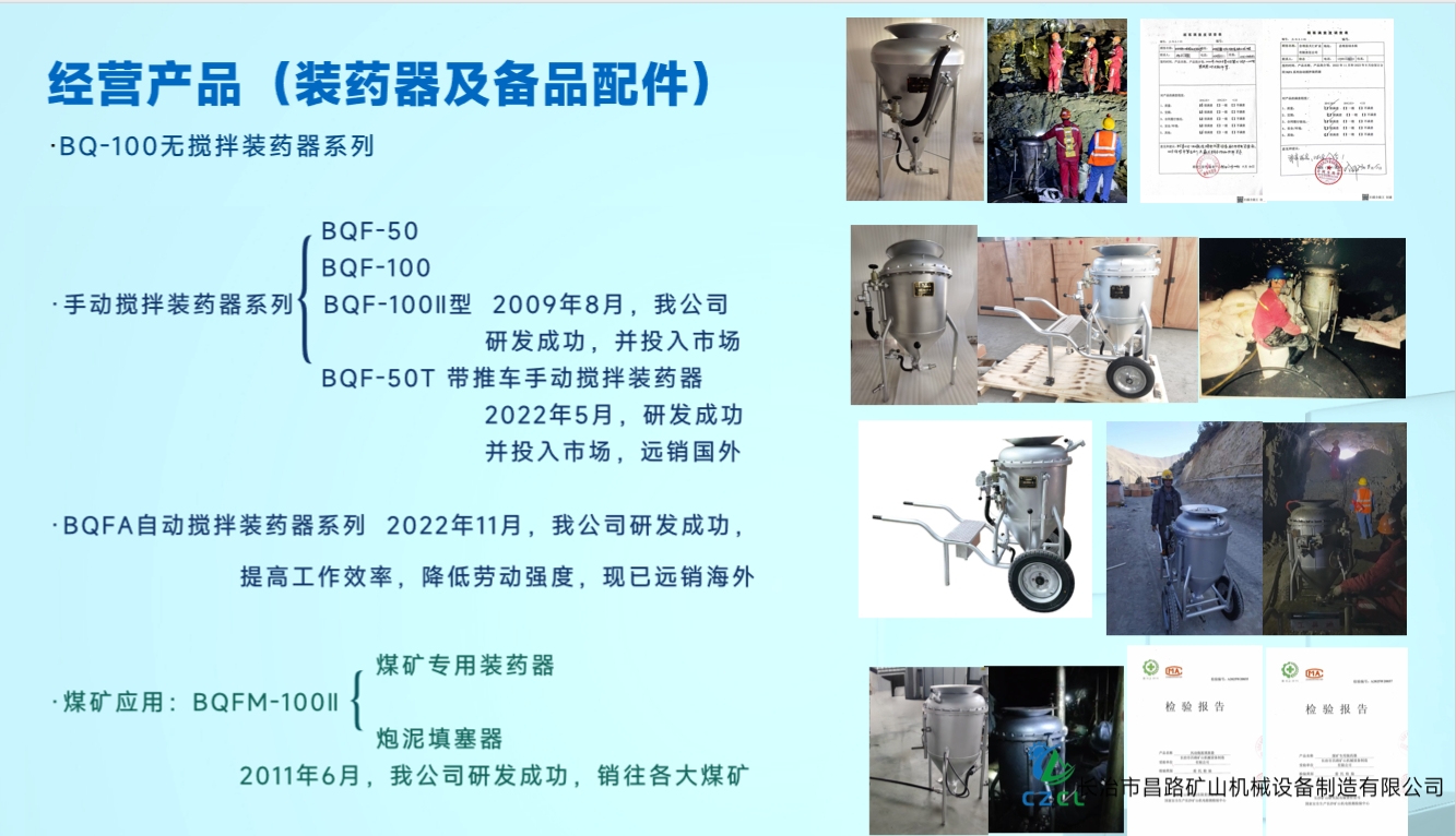 由于井下頻繁裝藥作業(yè),手動(dòng)攪拌易導(dǎo)致裝藥密度不均,爆破質(zhì)量也有提升的空間,我公司經(jīng)過多次實(shí)驗(yàn),于2022年創(chuàng)新研發(fā)BQFA自動(dòng)攪拌系列裝藥器,在裝藥過程中,搬運(yùn)方便,減少施工作業(yè)時(shí)間,裝藥均勻,提高工作效率,降低勞動(dòng)強(qiáng)度,裝藥器的各項(xiàng)性能得到顯著的提高,在福建某礦山首次使用,得到礦山的大力認(rèn)可和推薦。